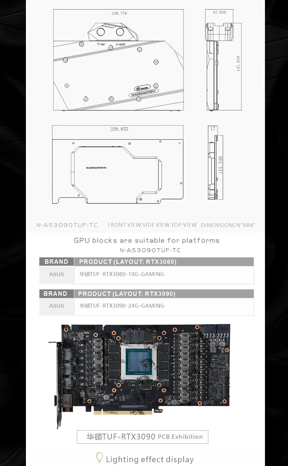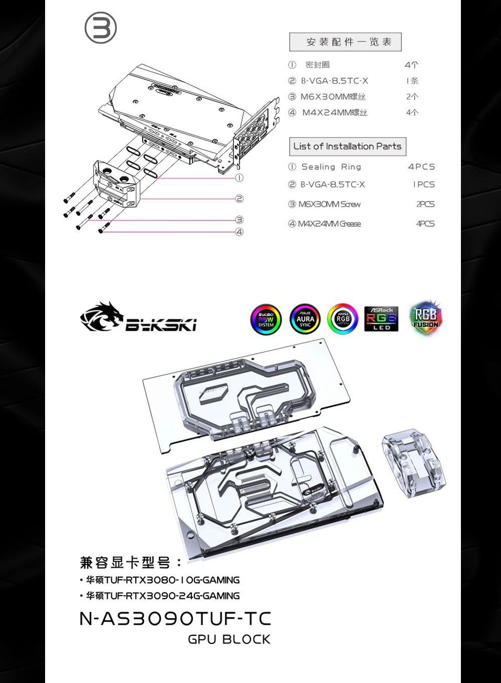 Bykski-Placa de refrigeración activa GPU, bloque de agua para ASUS TUF RTX 3090 3080 GAMING, Enfriador de disipador de calor para radiador