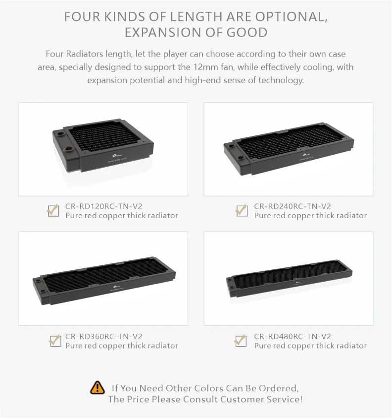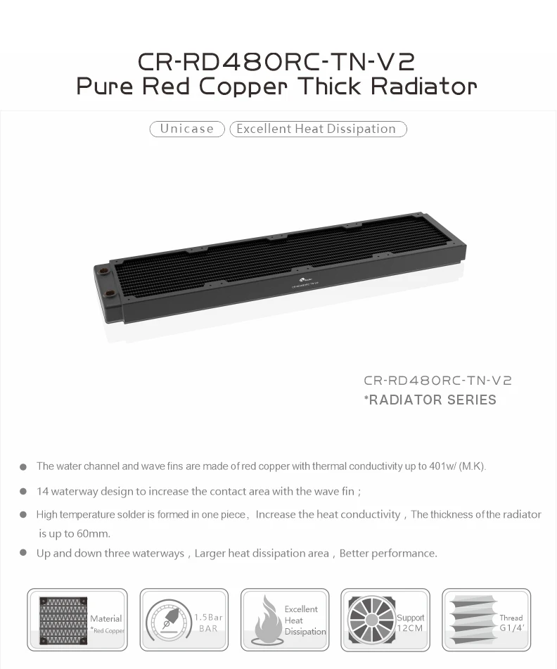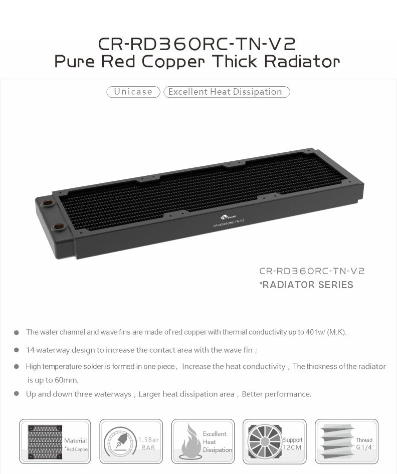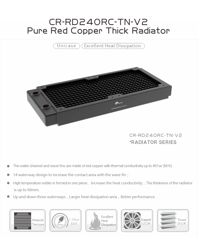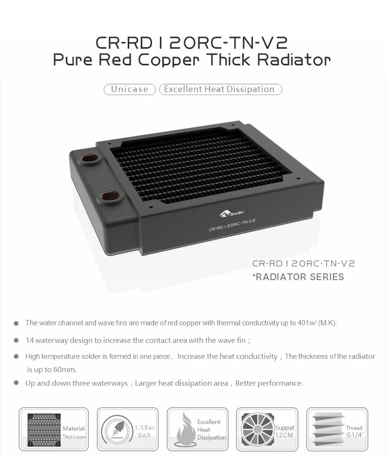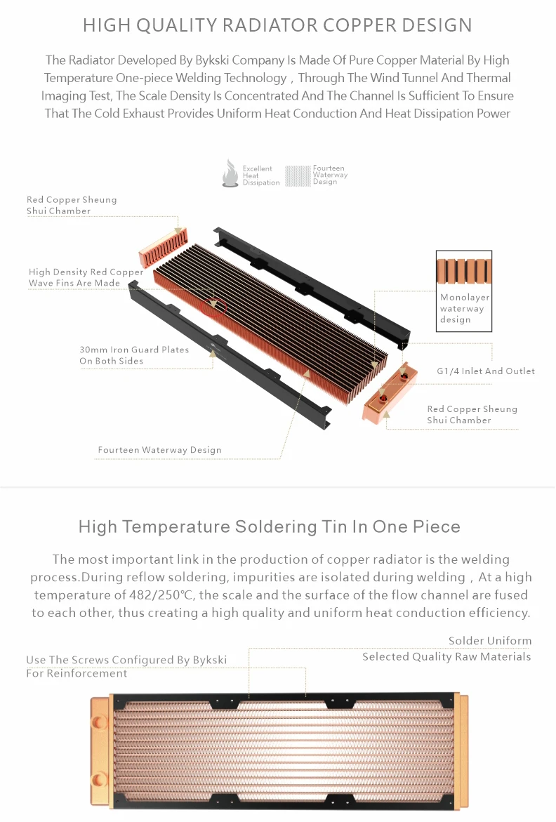 Bykski G1/4 " 30MM Thick Full Copper PC Radiator,Water Cooling Heatsink Cooler Support 12cm Fans 120/240/360/480MM Black/White