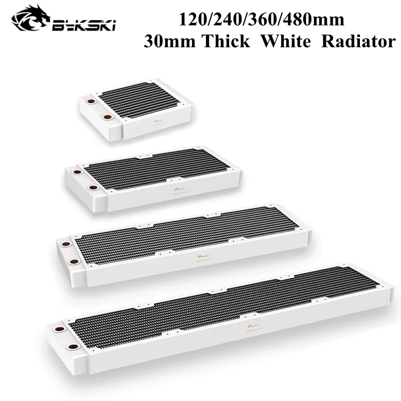 Bykski-radiador de cobre de 30MM de espesor para ventilador de 12cm, enfriador de agua, refrigeración por PC, disipador de calor de agua G1/4 ", 120/240/360/480MM, blanco