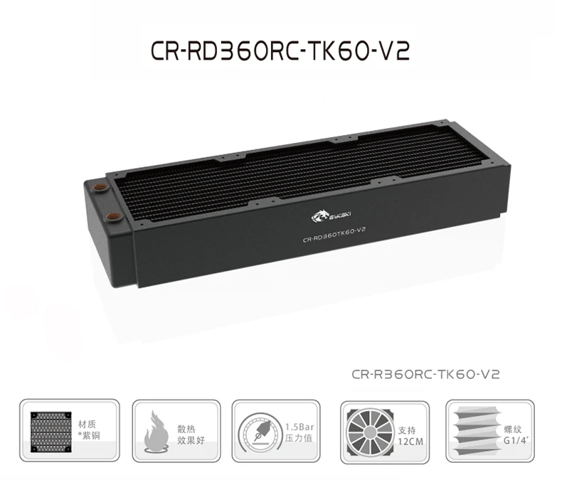Comprar Bykski-Radiador de cobre de 360mm, 60mm de espesor, refrigerante de agua de PC, 3 pisos, canal de descarga, intercambiador de disipador de calor para ventilador de 3x12cm