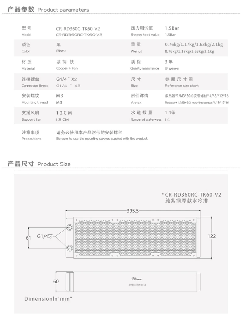 Comprar Bykski-Radiador de cobre de 360mm, 60mm de espesor, refrigerante de agua de PC, 3 pisos, canal de descarga, intercambiador de disipador de calor para ventilador de 3x12cm