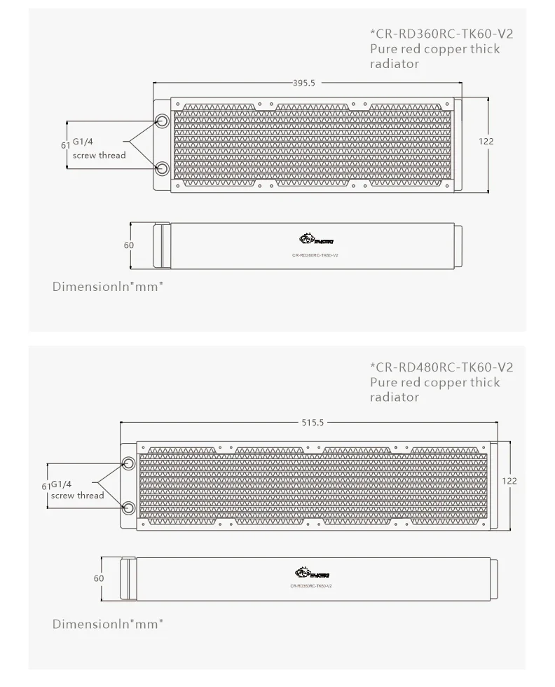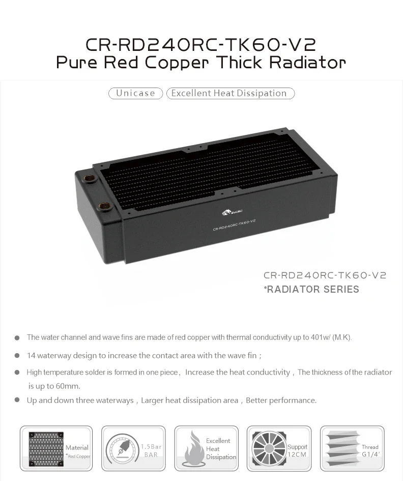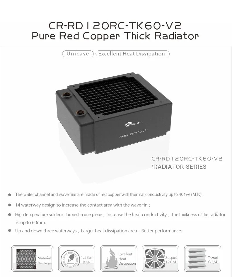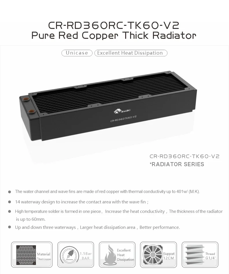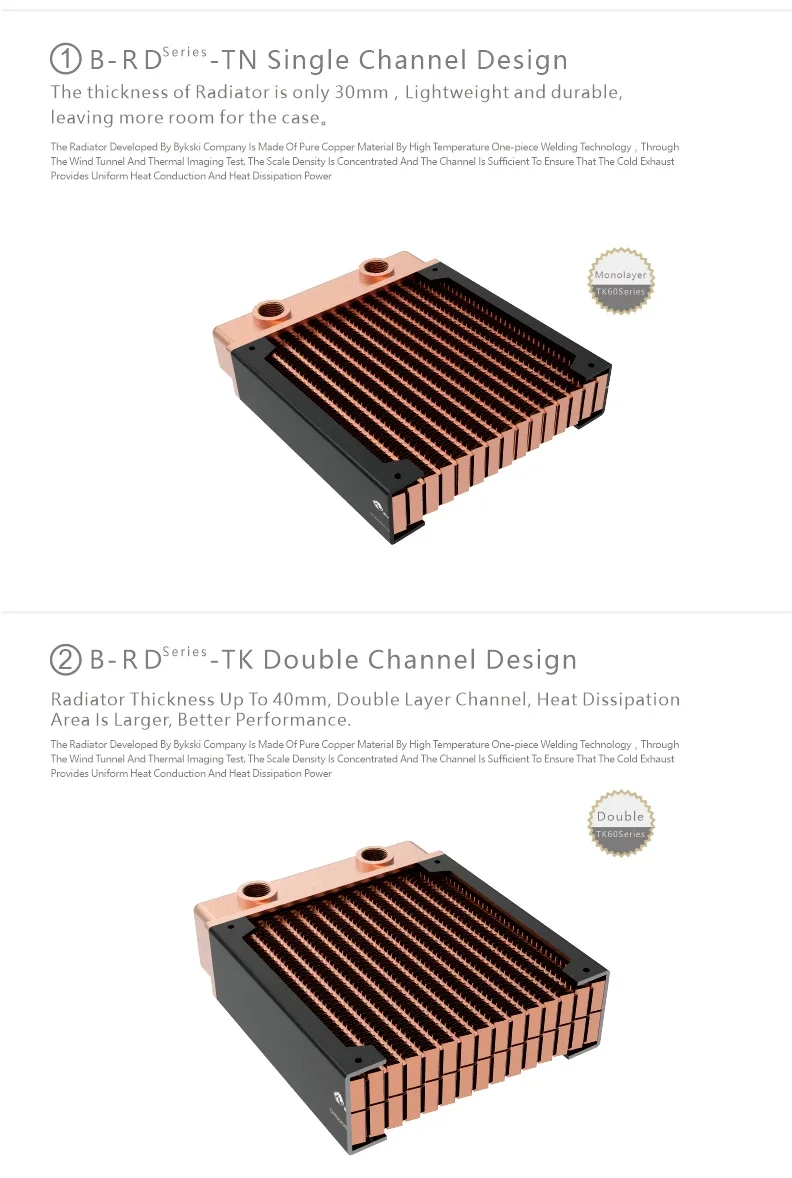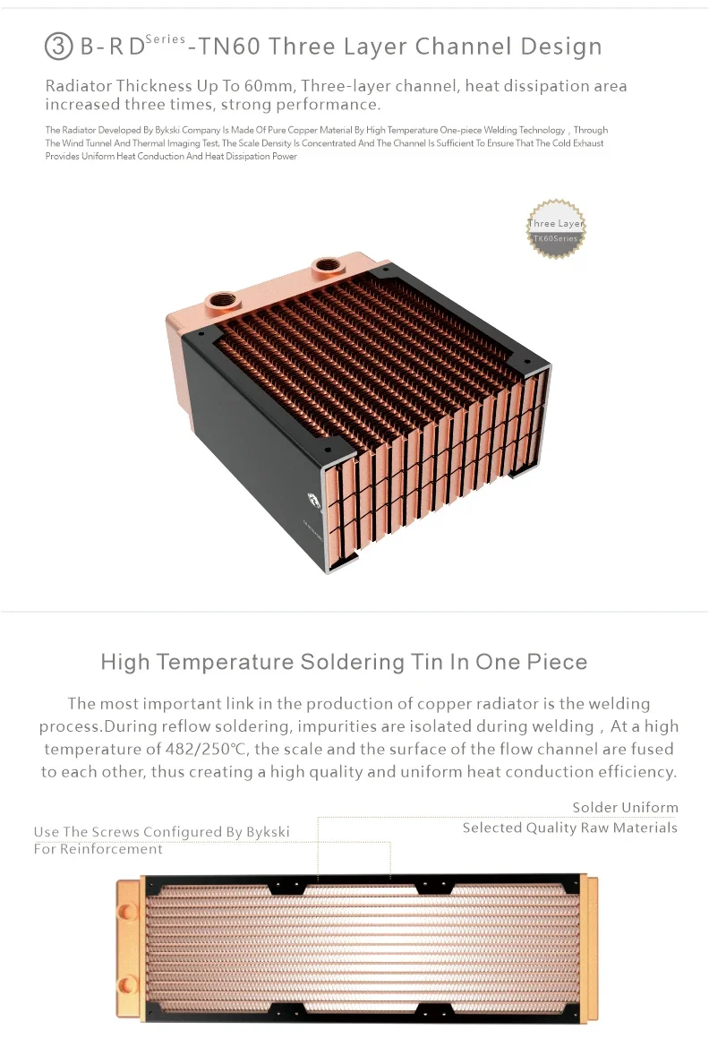 Comprar Bykski-Radiador de cobre completo de 60mm de espesor, refrigeración por agua para PC, disipador térmico de ordenador, canal de 3 pisos, 120/240/360MM