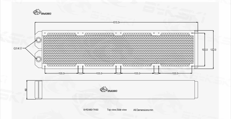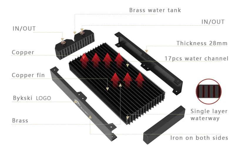 Comprar Bykski-Radiador de cobre para ordenador, 60mm de espesor, 480mm, refrigerante de agua, descarga, disipador de calor, radiador para ventilador de 4x12cm