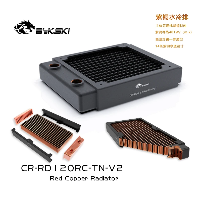 Comprar Bykski-Radiador de cobre de una sola fila para ordenador, líquido de descarga de agua para ventiladores disipador de calor de 12cm, 30mm de espesor y 120mm de longitud, B-RD120-TN