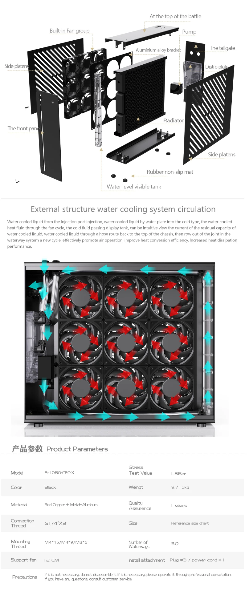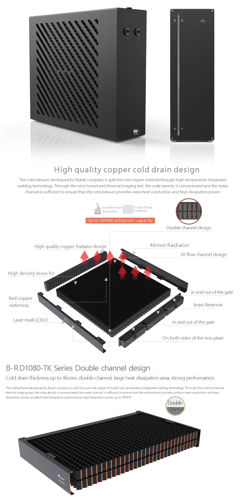 Bykski-radiador externo refrigerado por agua 1080, sistema de servidor para ordenador portátil, refrigeración líquida, instalación independiente integrada, B-1080-CEC-X