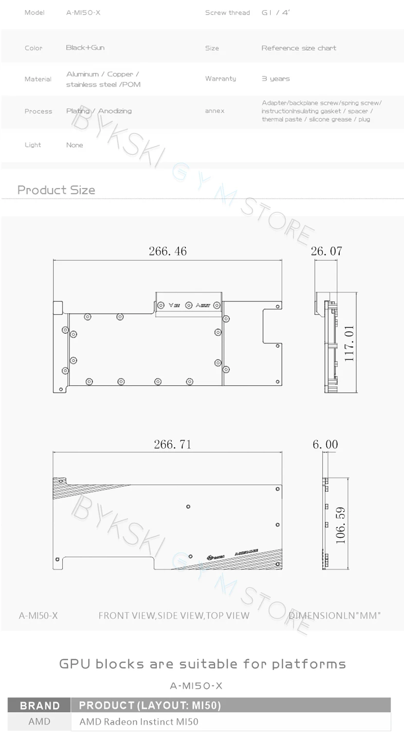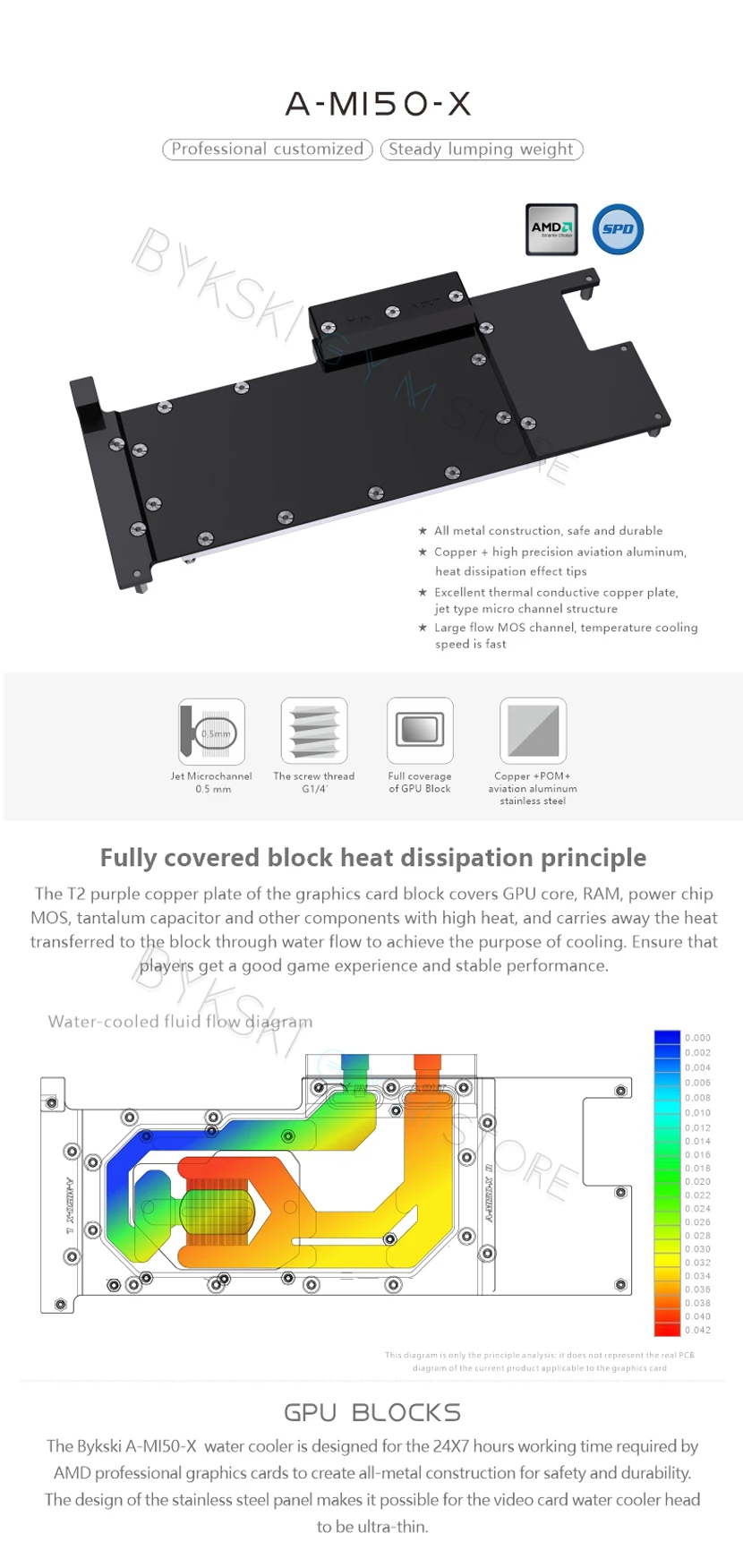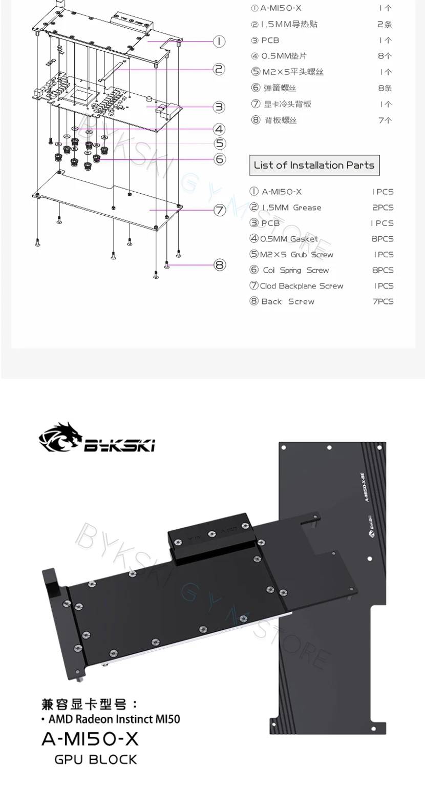 Comprar Bykski-Radiador de refrigeración de cobre, bloque de agua AMD Radeon Instinct MI50 para tarjeta gráfica AMD MI50/GPU Cooler/ All Metal A-MI50-X