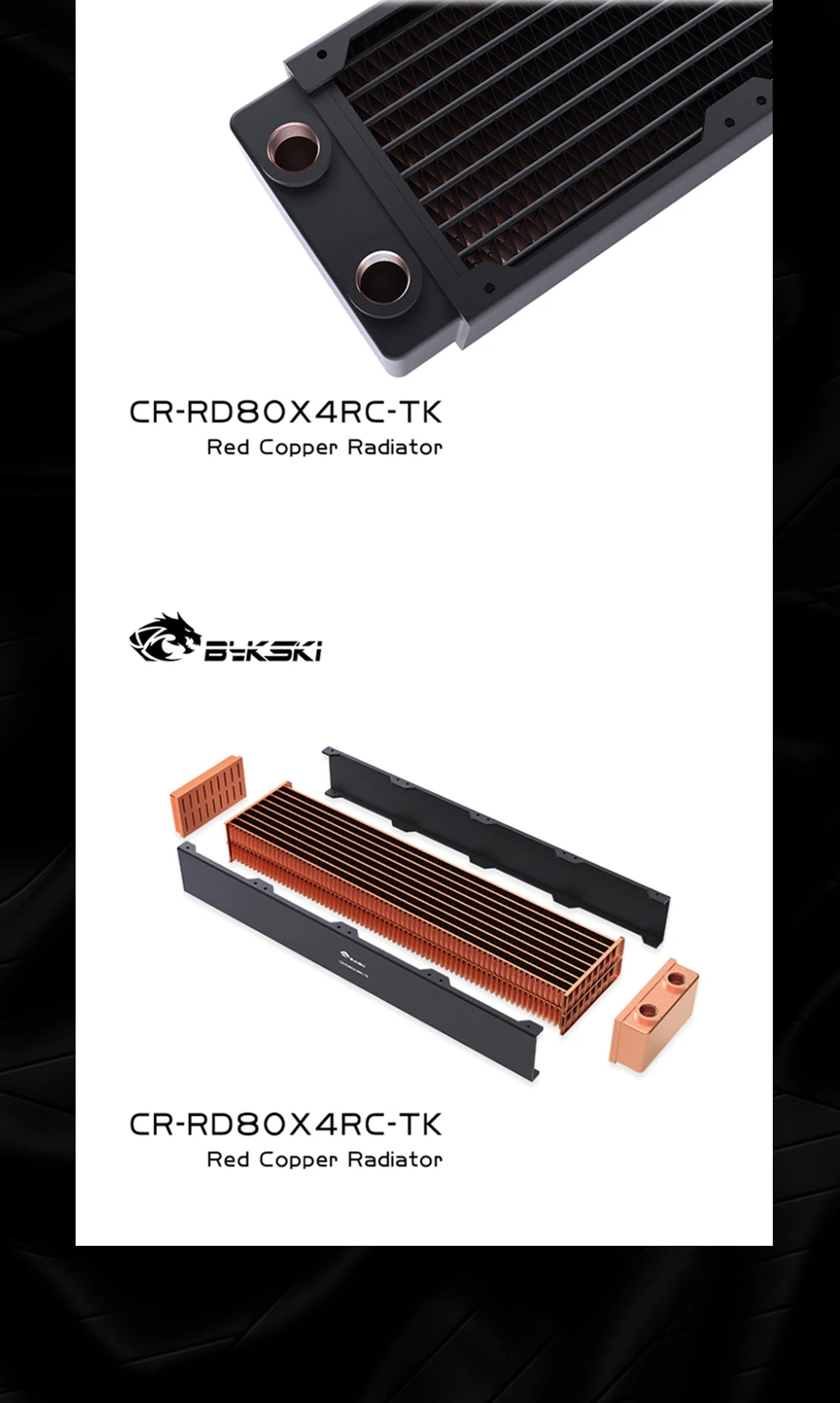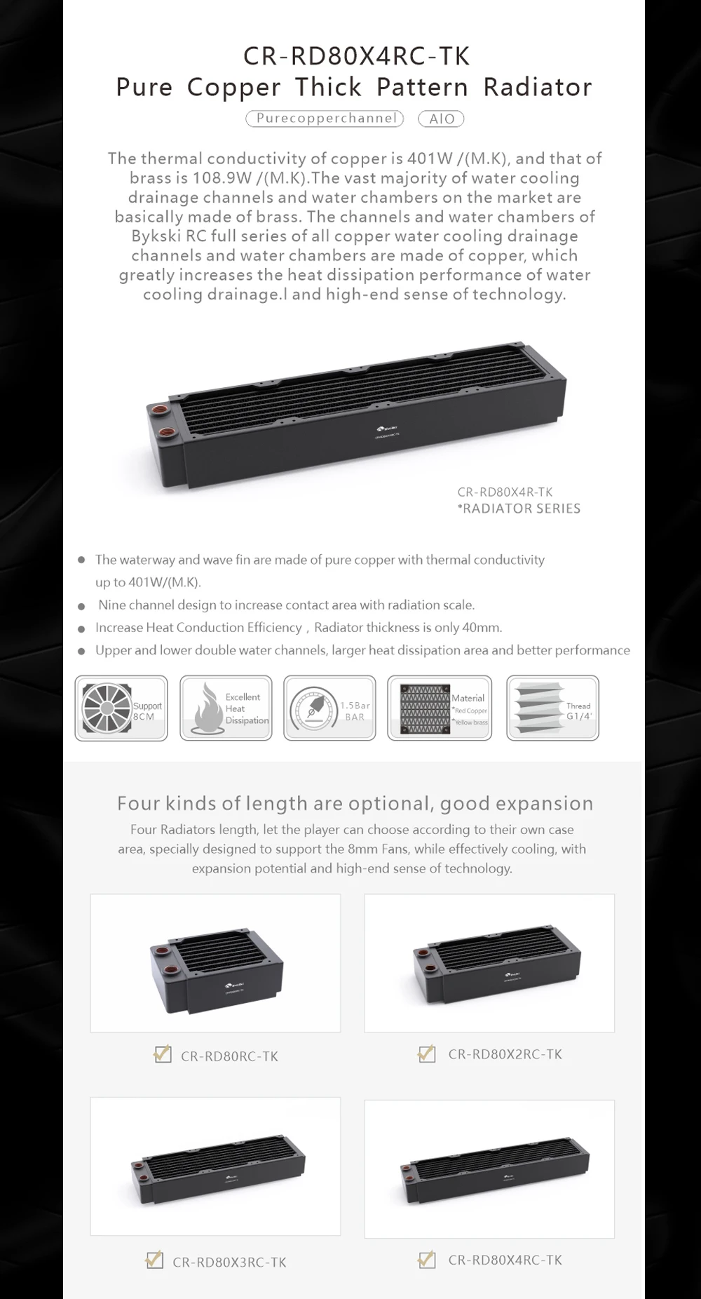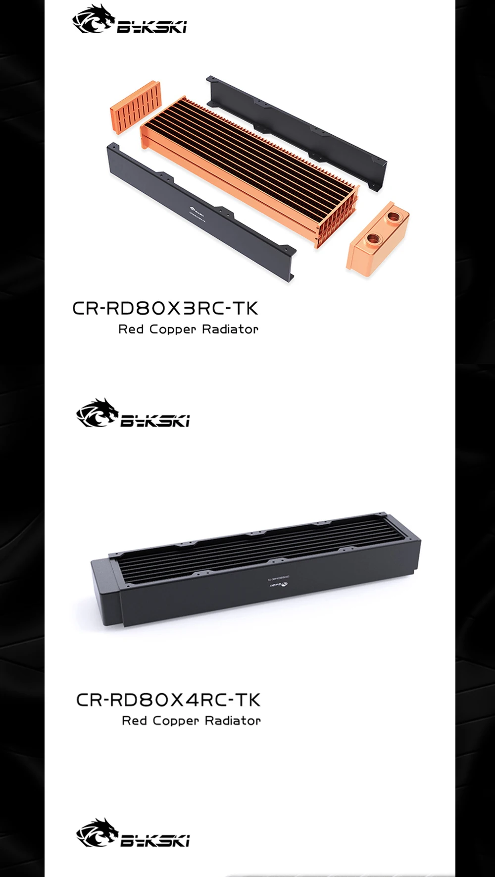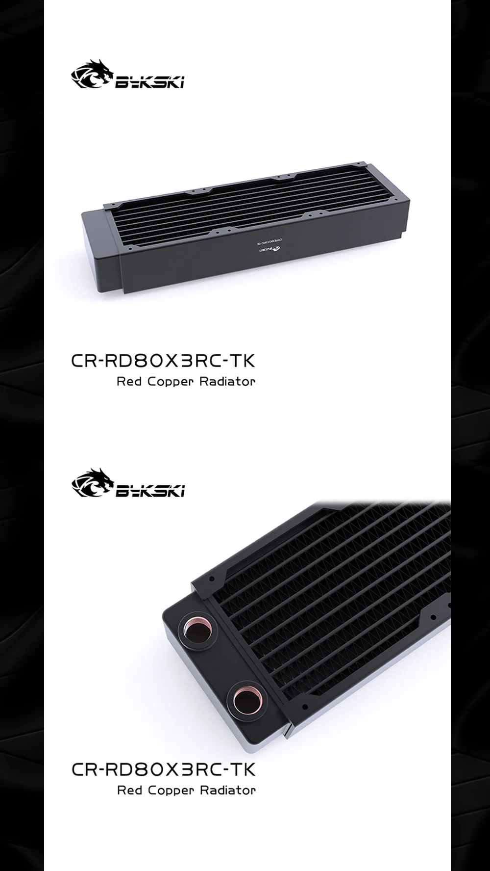 Bykski-Radiador de refrigeración por agua, disipación de calor de 40mm de espesor para ventilador de 80mm, de alto rendimiento CR-RD80X4RC-TK, PC de cobre, 80, 160, 240, 320