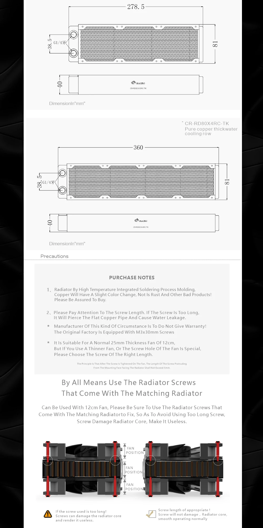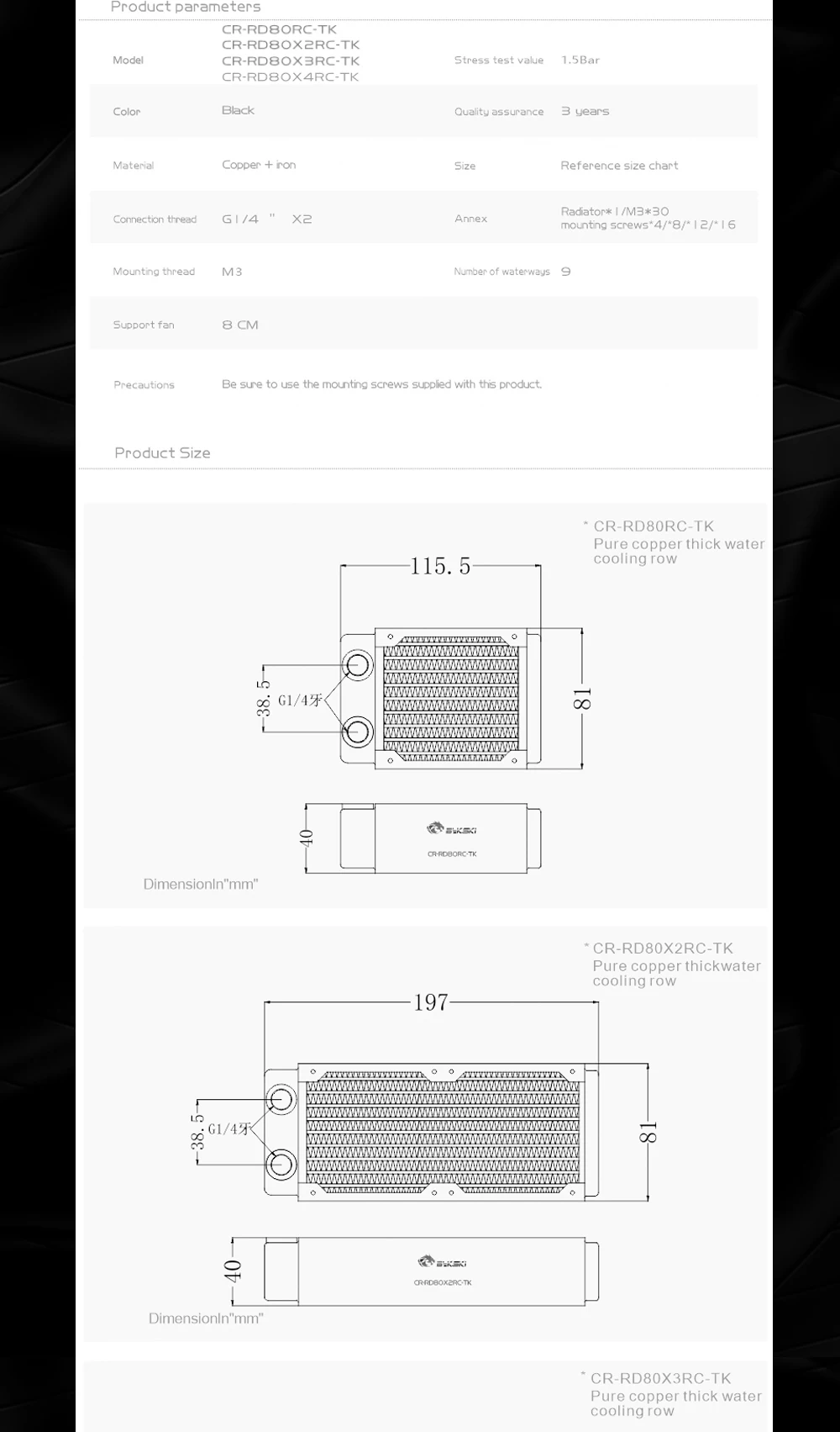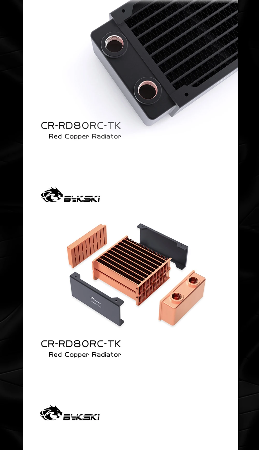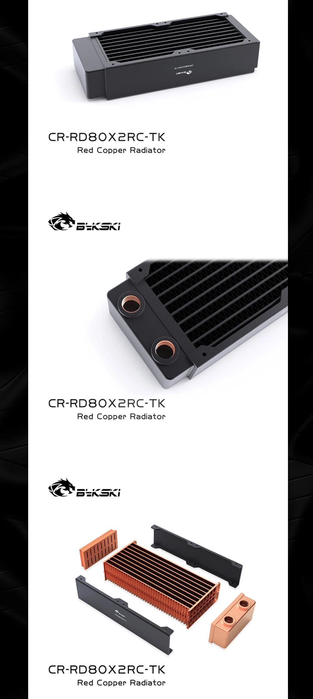 Bykski-Radiador de refrigeración por agua, disipación de calor de 40mm de espesor para ventilador de 80mm, de alto rendimiento CR-RD80X4RC-TK, PC de cobre, 80, 160, 240, 320