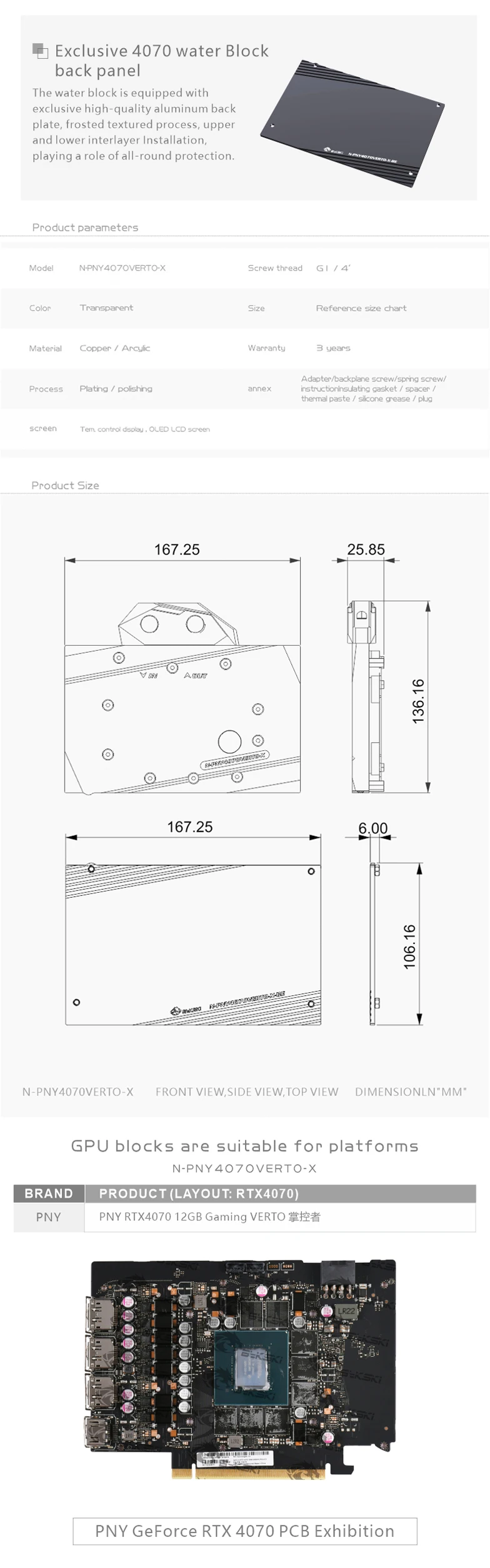 Comprar Bykski RTX 4070 bloque de agua GPU enfriador de agua PNY RTX4070 12GB Gaming VERTO radiador 5V ARGB/12V RGB MB SYNC N-PNY4070VERTO-X