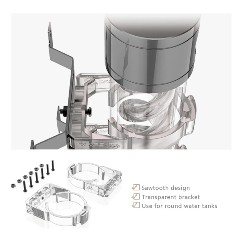 Comprar Bykski-soporte de tanque de agua para depósito de 50mm y 60mm de diámetro, hebilla transparente para ayudar a la fijación del tanque, B-CT60-RB-V2
