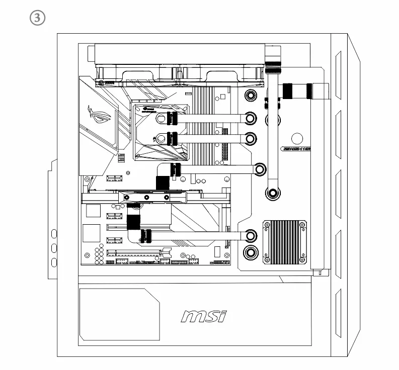 como canal de agua utilizado para la carcasa de la computadora MSI MPG GUNGNIR 110R