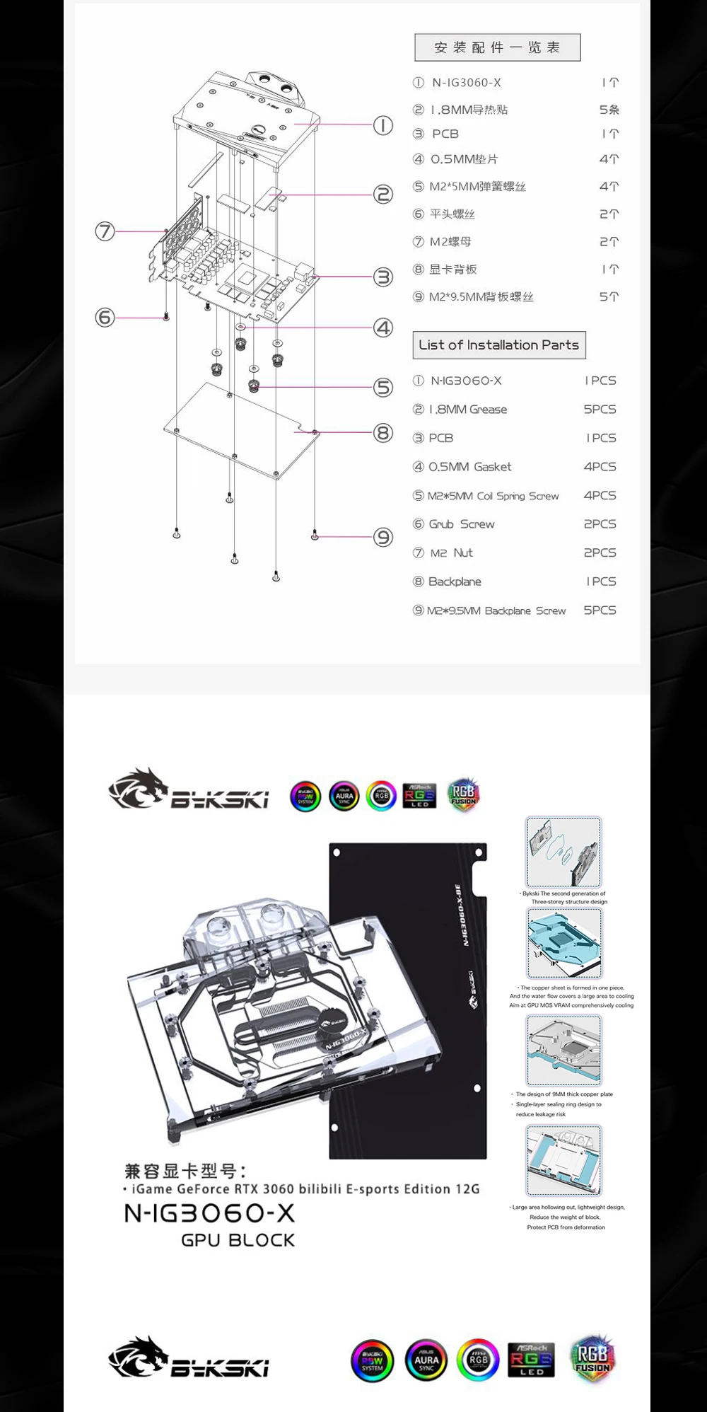 Comprar Bykski-tarjeta gráfica de N-IG3060-X, bloque de agua para IGame GeForce RTX 3060, bilinli, edición e-sports, tarjeta de vídeo de 12G, Enfriador de GPU