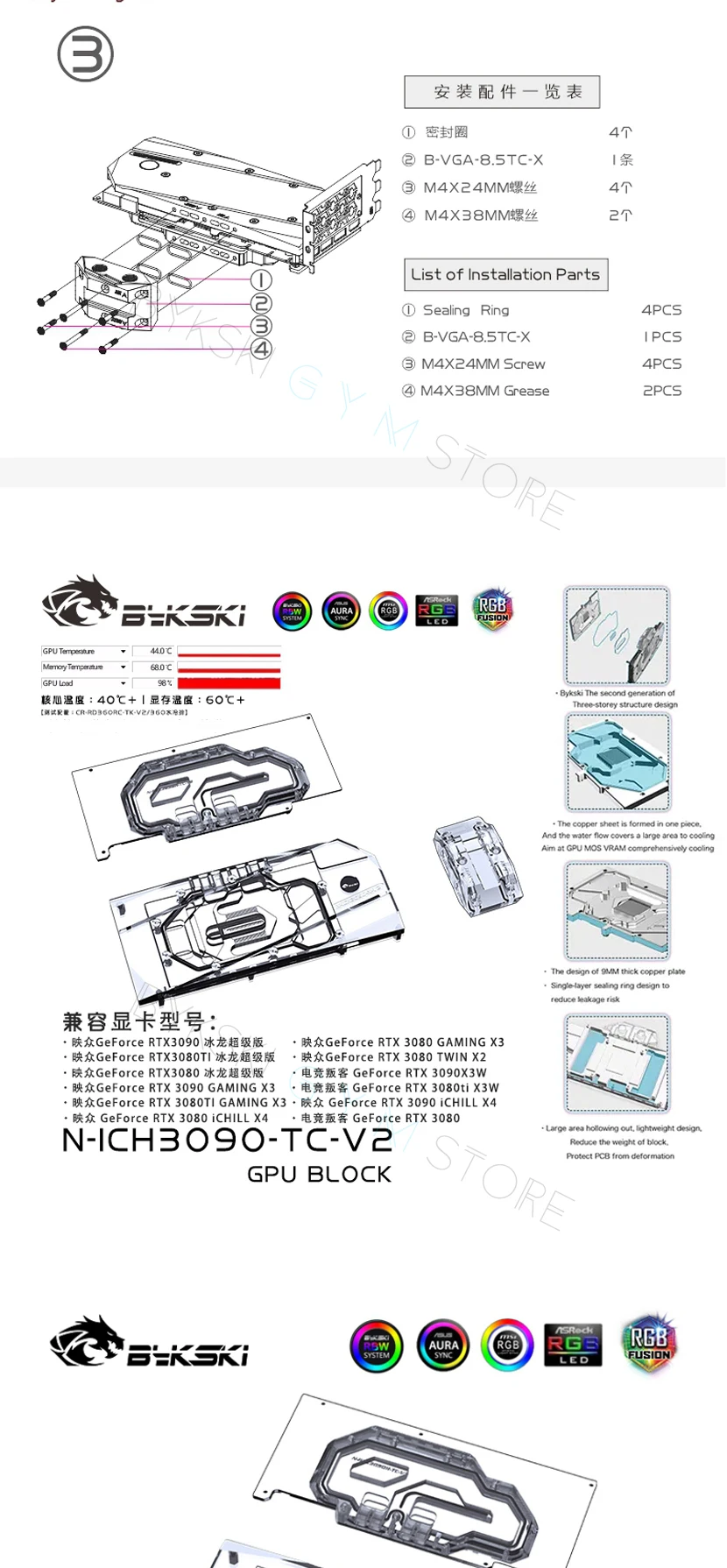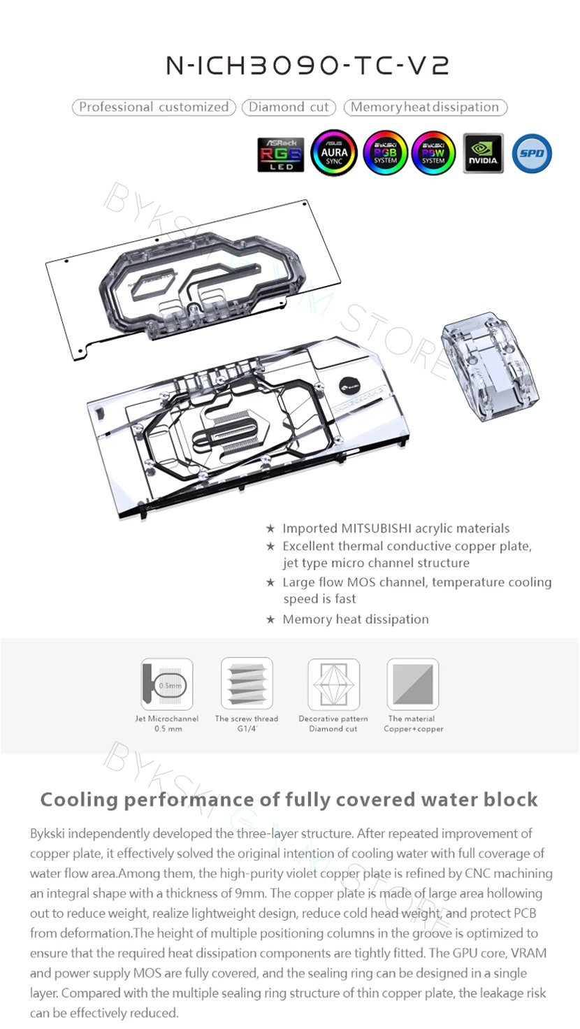 Comprar Bykski tarjeta de vídeo bloque de agua para Inno3D ICHILL RTX 3080 3080ti 3090GPU placa trasera activa doble cara VRAM enfriador N-ICH3090-TC-V2