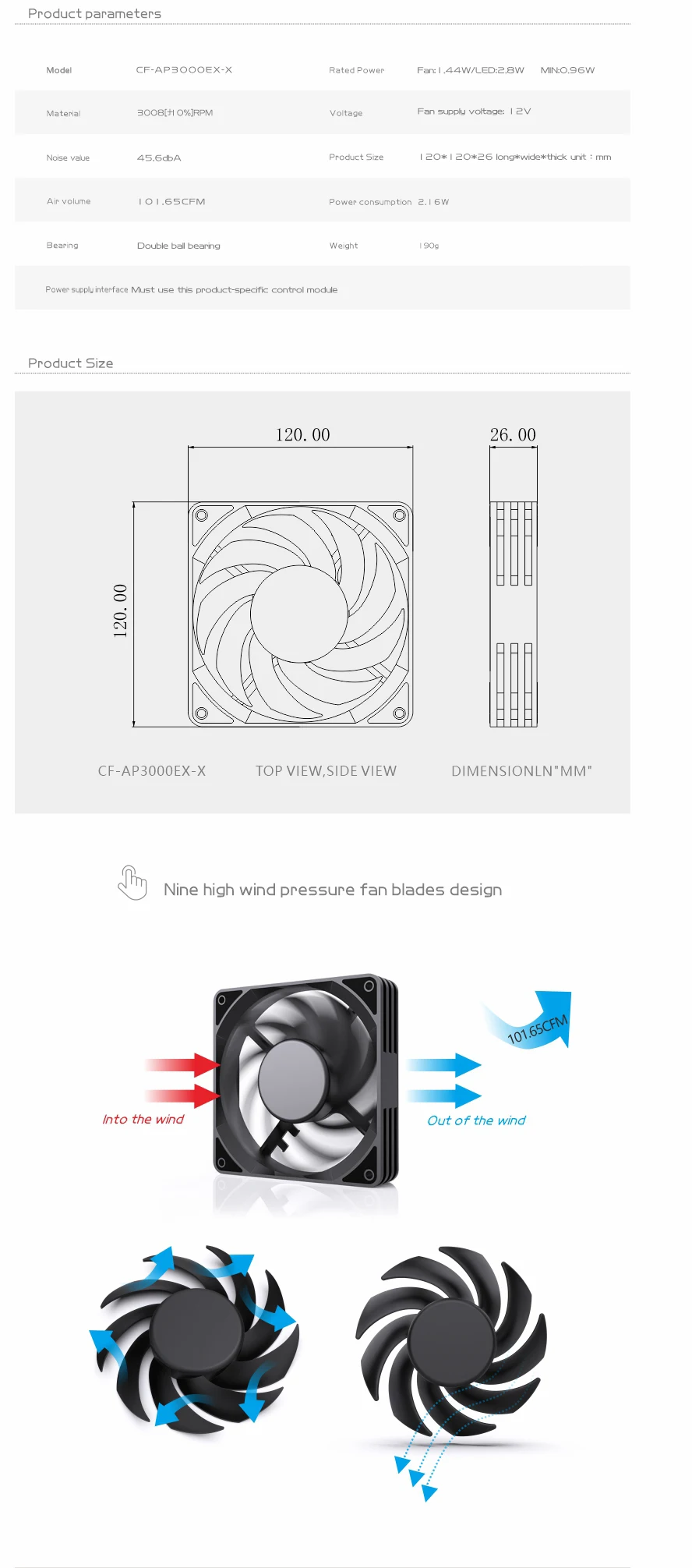 Comprar Bykski-ventilador de 120mm para refrigeración por agua, radiador de ordenador, disipador térmico de 3008RPM, compatible con PWM, CF-AP3000EX-X de velocidad ajustable