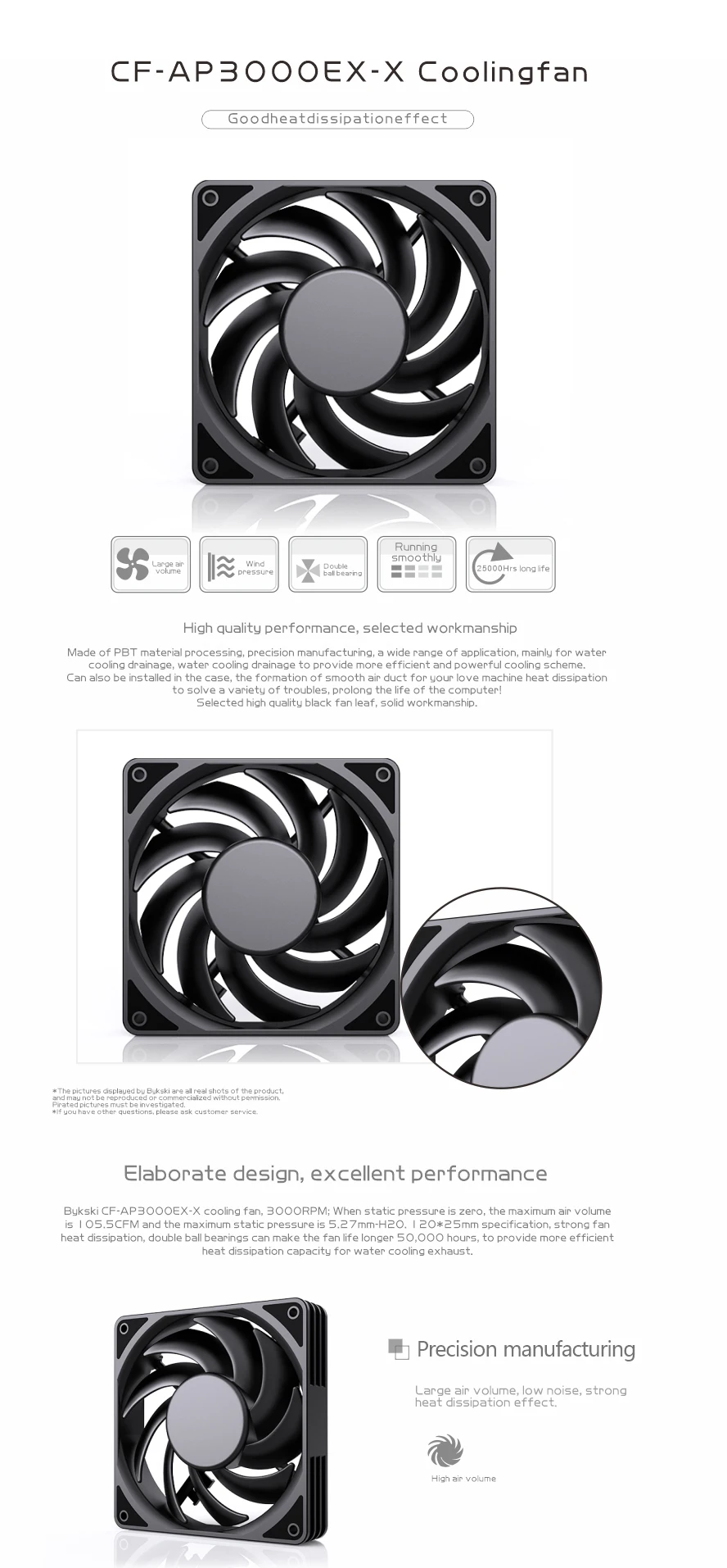 Bykski-ventilador de 120mm para refrigeración por agua, radiador de ordenador, disipador térmico de 3008RPM, compatible con PWM, CF-AP3000EX-X de velocidad ajustable