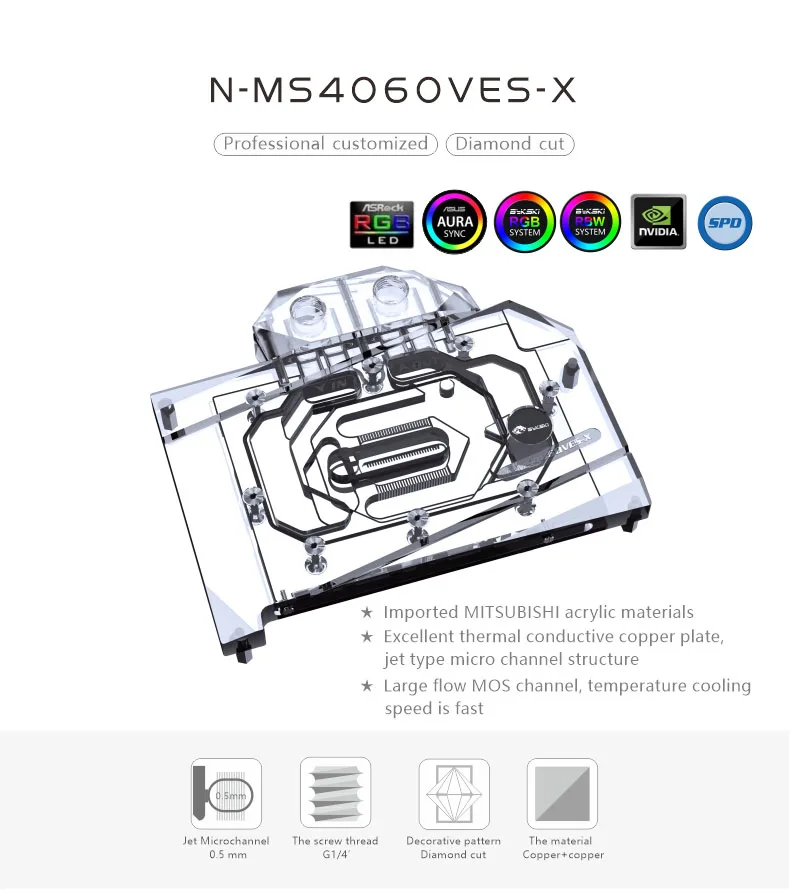 Comprar Bykski Water Block for MSI GeForce RTX 4060 GAMING X / VENTUS 2X BLACK 8G GPU Card/ Copper Cooler RGB Radiator/ N-MS4060VES-X