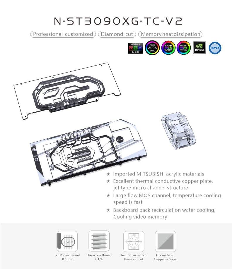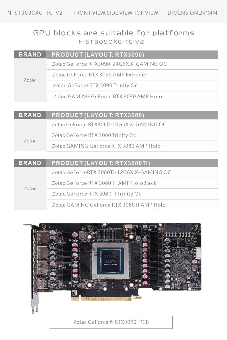 Comprar BykskiGPU-Bloque de placa trasera activa para Zotac RTX3090 3080 Gaming OC/AMP Extreme/Trinity OC VGA VRAM, enfriador doble, N-ST3090XG-TC-V2