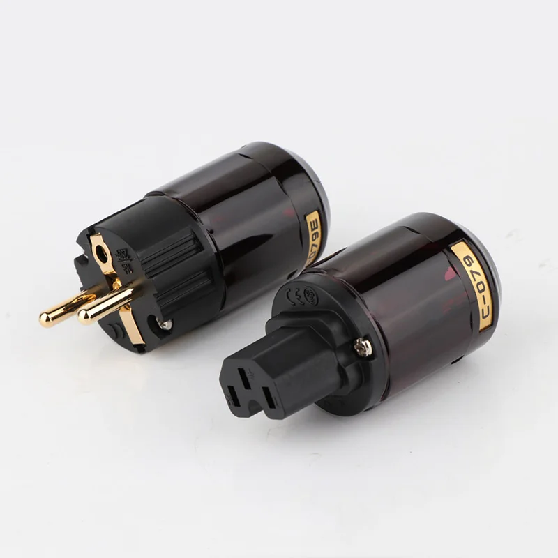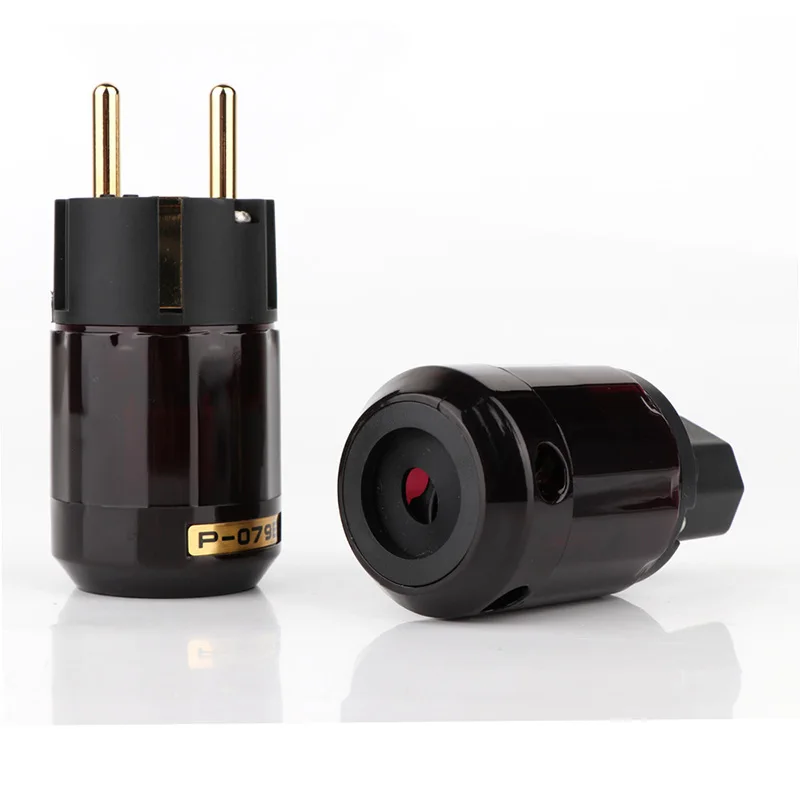 Comprar C-079 Hifi P-079e Schuko, enchufe europeo de 24k chapado en oro, Conector de Audio IEC hembra-macho para bricolaje
