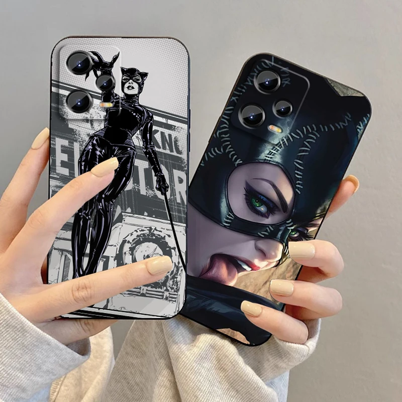 C-catwoman-Funda negra para Xiaomi Redmi Note 13, 12R, 12S, Turbo 11, 11T, 11S, 10, 10S Pro Plus, 5G