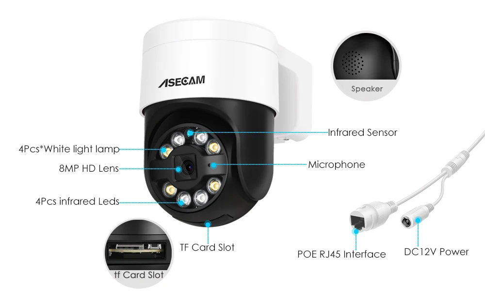 Con una alta resolución de 8 megapíxeles (3840 x 2160), esta cámara de vigilancia IP HD de 8 MP puede capturar vídeos con calidad HD de 3840p.Es un gran avance en comparación con 720p HD o 1080p Full HD.Nunca te perderás ni un solo detalle de tus seres queridos.lo que le permite ver todos los objetos con mucha claridad.