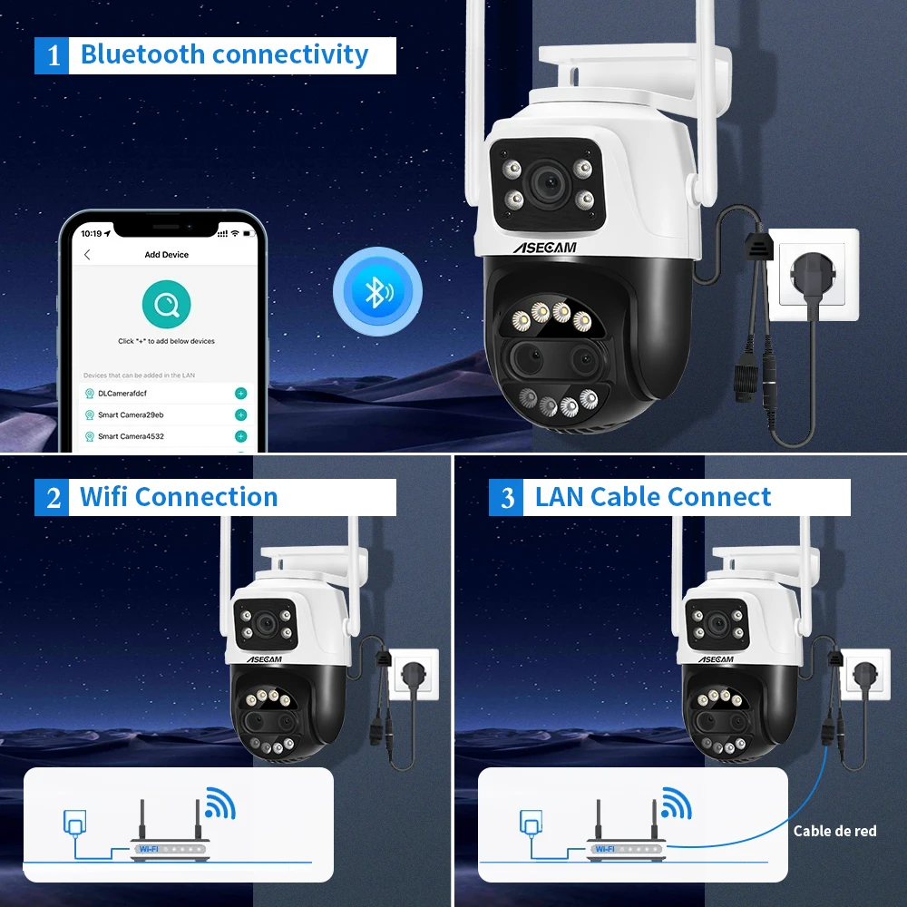 Powered by DC12V adapter, you can connect the camera to Wi-Fi network. you can setup wifi connection of the camera or LAN Search with network cable connected to router, work with 2.4G wifi only (Does not support 5G).