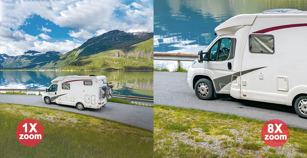 you can switch from 1X to 8X digital zoom instantly , watch far and near images through Picture in Picture .