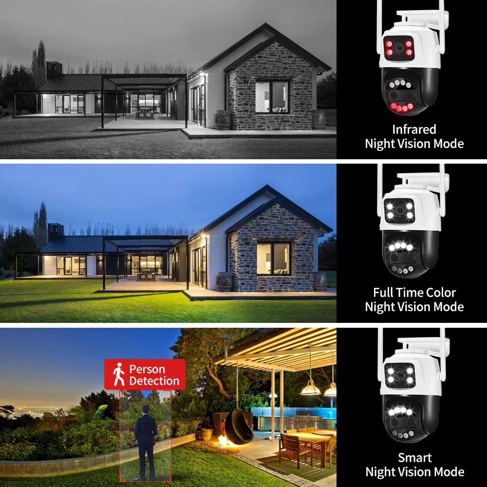 Built-in 8 LEDs, supports full-color mode, infrared mode and double-light alert mode (infrared night vision is displayed when no object moves, and the white light will be turned on to switch to full-color mode after motion is detected).