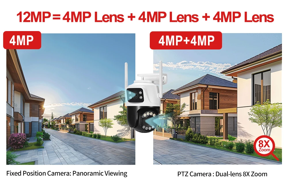 *Full new upgraded version 2.8mm-12mm Dual lens camera , 8x digital zoom ,Switch 1X to 8X Digital Zoom Instantly ;