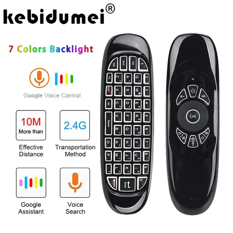 Comprar C120 RGB 7 retroiluminación Fly Air Mouse Sensor giroscópico inalámbrico 2,4G RF teclado Control remoto para juegos Android Smart TV Box