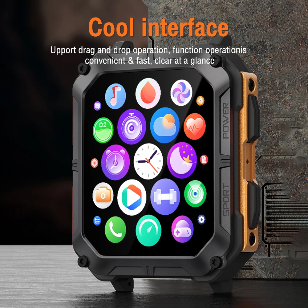 Comprar C20Pro-reloj inteligente para hombre y mujer, pulsera con pantalla HD de 1,83 pulgadas, resistente al agua IP68, Bluetooth, llamadas, modo de espera de 35 días, 123 modos deportivos