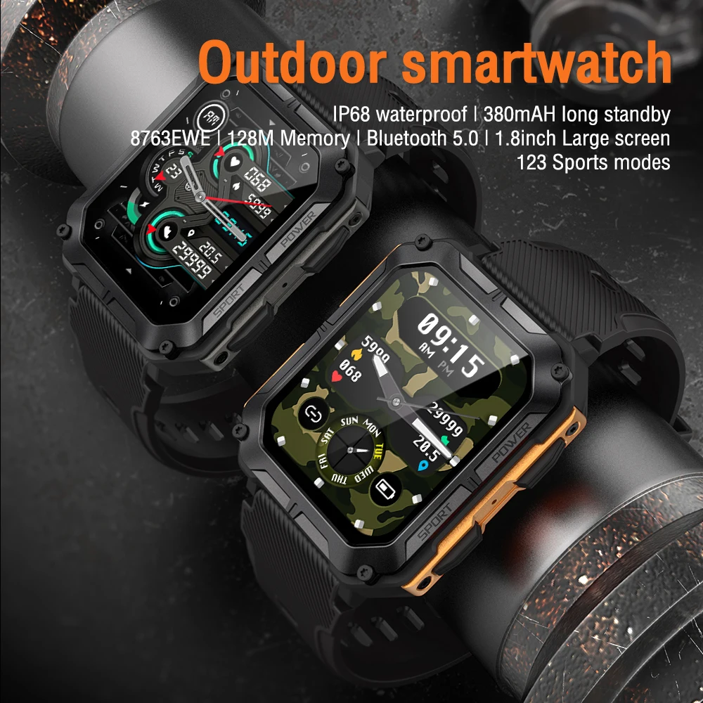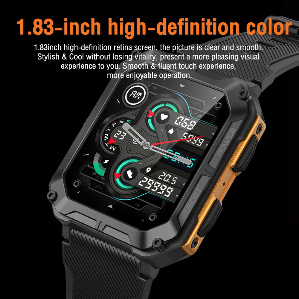 Reloj inteligente C20Pro con pantalla HD de 1,83 pulgadas, reloj inteligente para hombres y mujeres, IP68, resistente al agua, llamada Bluetooth, 35 días en espera, 123 modos deportivos