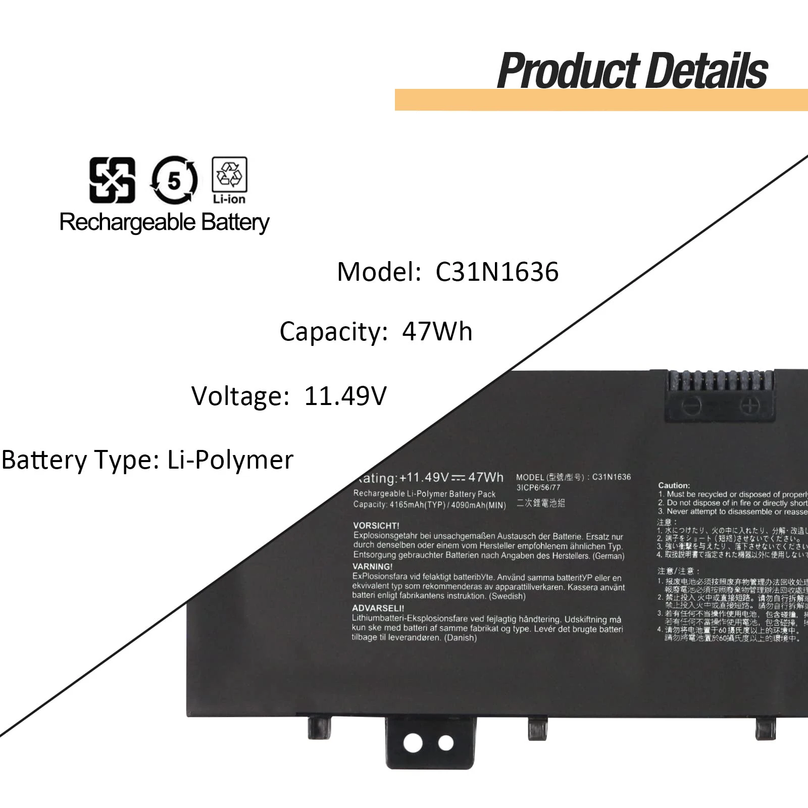 Comprar C31N1636 batería del ordenador portátil para ASUS VivoBook Pro 15 N580V N580VD N580VN N580GD NX580V NX580VD X580V X580GD M580GD ZenBook UX502VD
