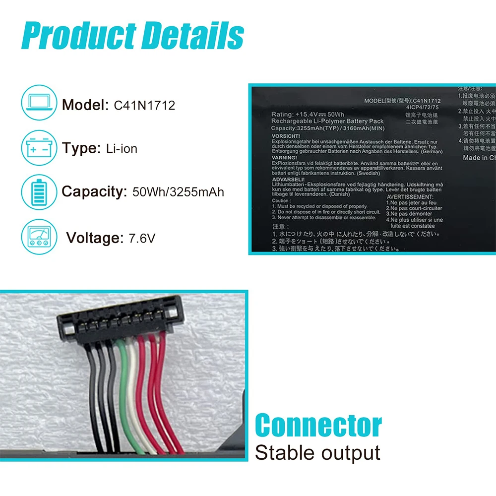 Comprar C41N1712 reemplazo de batería de ordenador portátil para Asus ROG Zephyrus GX501 GX501G GX501GM GX501GI GX501VS GX501VI GX501GS Series 4ICP4/72
