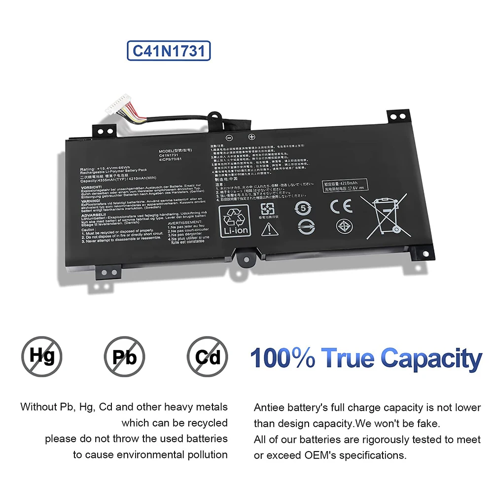 Comprar C41N1731 reemplazo de batería de portátil para Asus ROG Strix Scar II GL504 GL504GW GL504GS GL504GM GL504GV G515 G515GV G515GW G715GV