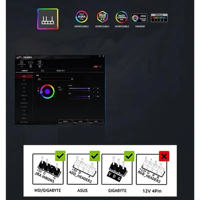 ARGB de 4 pines realiza la iluminación del ventilador de control del software de la placa base y el cambio de color sincrónico de otros productos ARGB.