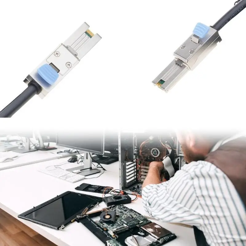 Este cable MiniSAS es una herramienta esencial para los ajustes del bastidor del servidor, copias de seguridad de datos, migraciones o cuando facilita el soporte de la transferencia de datos durante las reparaciones y reemplazos del disco duro.