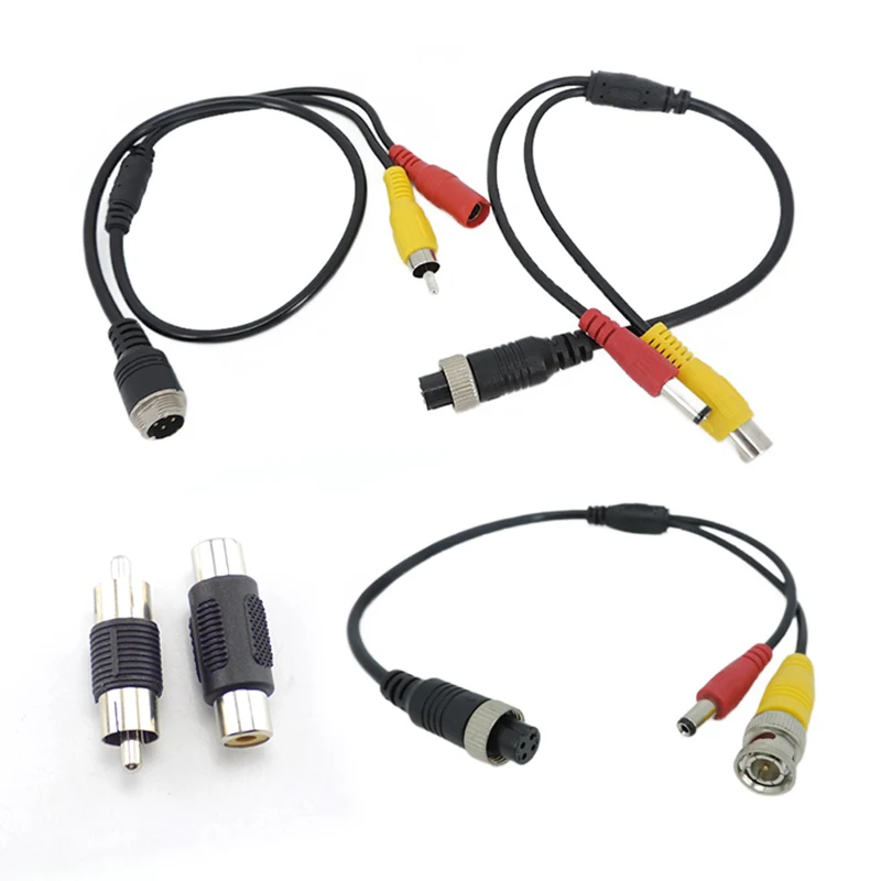 Cabezal de aviación de 4 pines macho/hembra a RCA AV/hembra DC convertidor adaptador de enchufe de Cable múltiple para Monitor de cámara trasera de coche