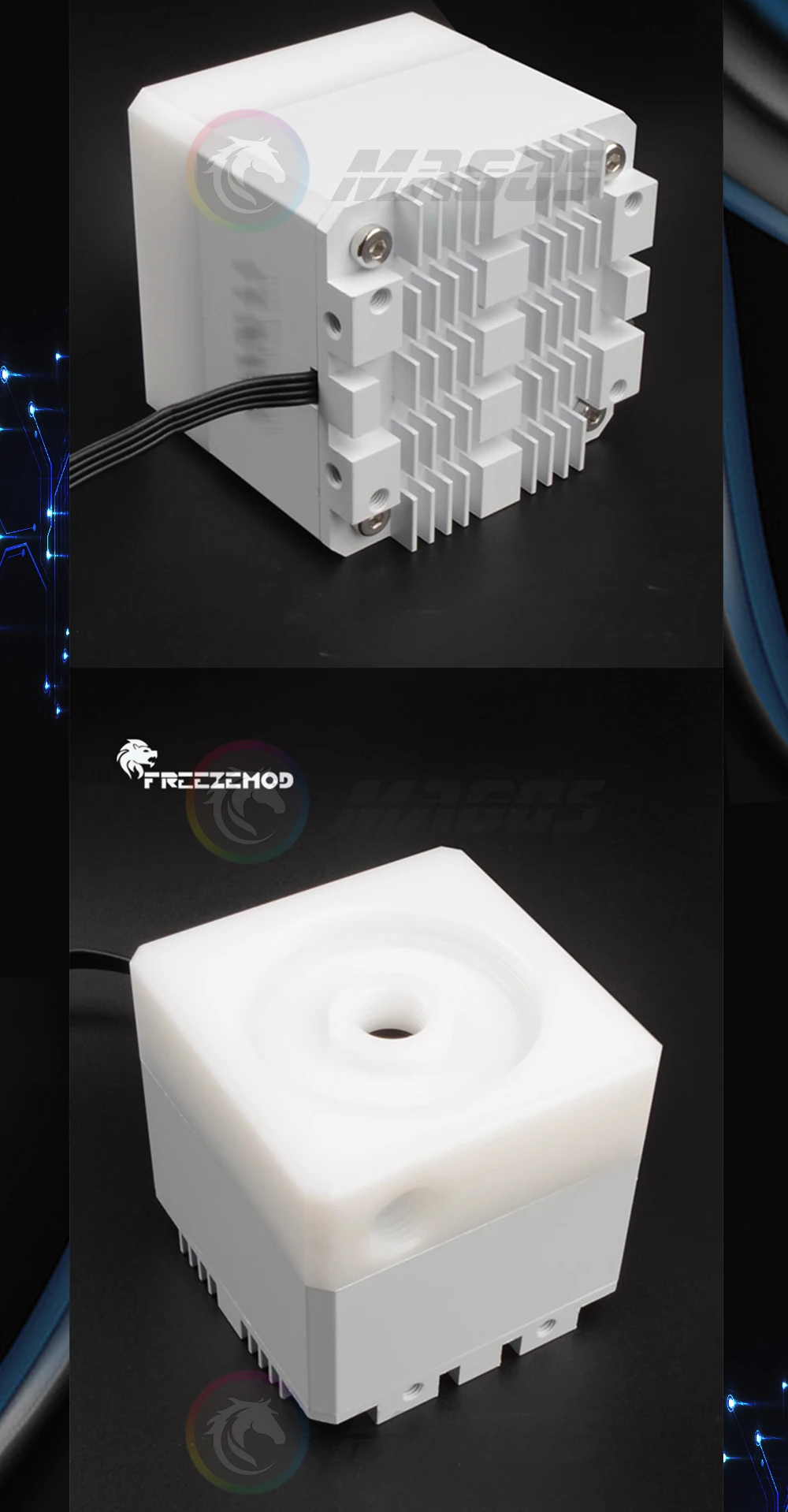 Comprar Cabezal de bomba de refrigeración por agua para PC 3,5 cubierta superior centrífuga silenciosa POM armadura de aleación de aluminio todo blanco