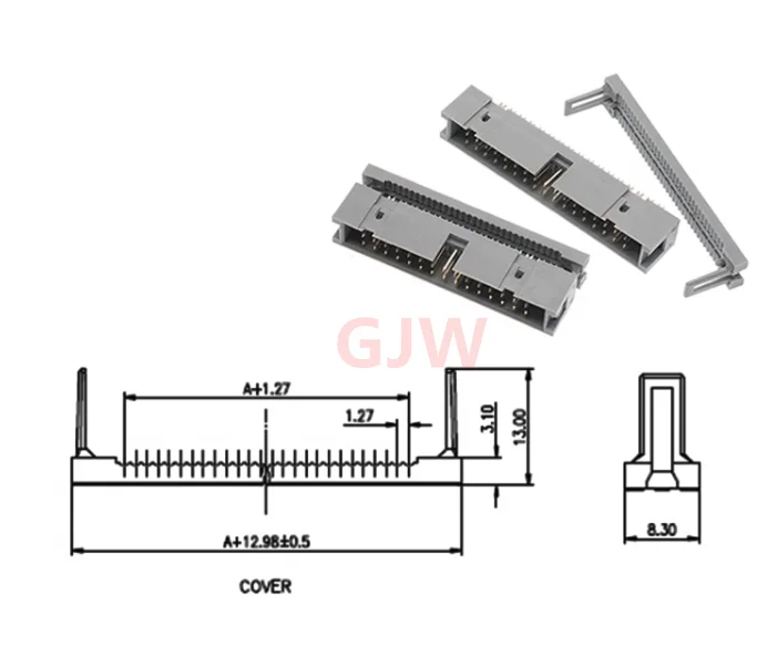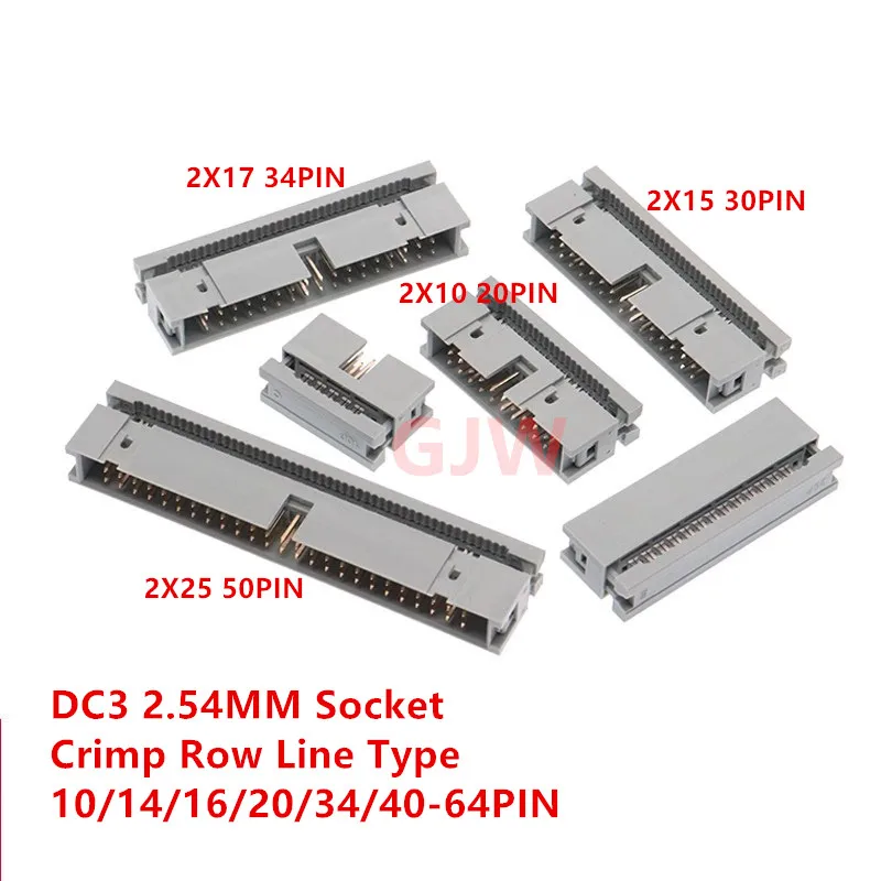 Comprar Cabezal de caja IDC de 5 piezas, 0,10 ", 2,54mm, paso 6 pines 8, 10, 12, 14, 16, 18, 20, 24, 26, 30, 34, 40, 50, 60, 64 Pines, cabezal macho, Cable plano de 1,27mm