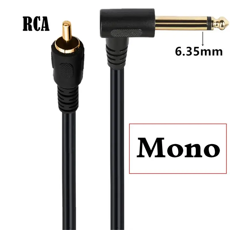 Núcleo de cobre puro cabeza chapada en oro 6,35mm simple/estéreo macho doblado a RCA macho altavoz mezclador cable de audio 0,3 metros