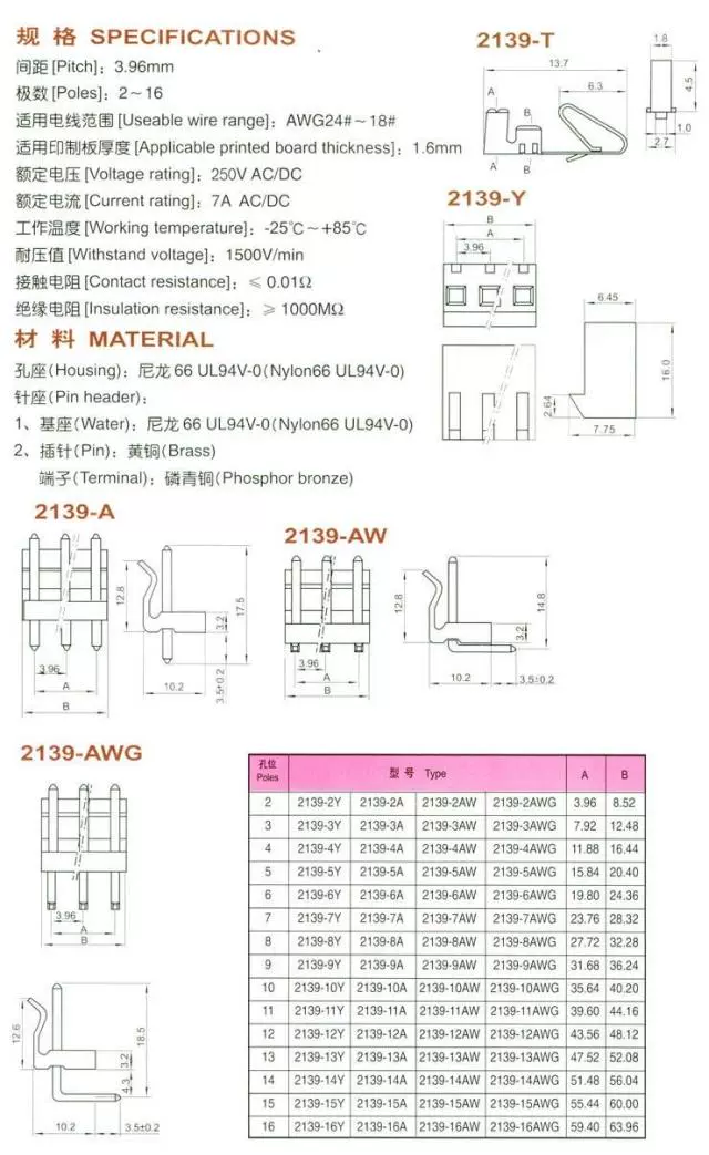 Cabezal de pasador recto de 3,96mm de enchufe recto CH3.96 (según el tipo que elija).