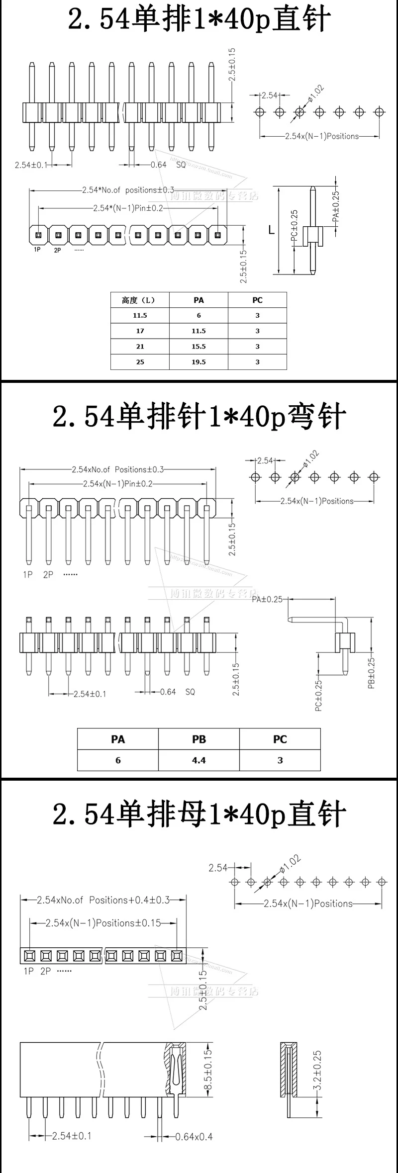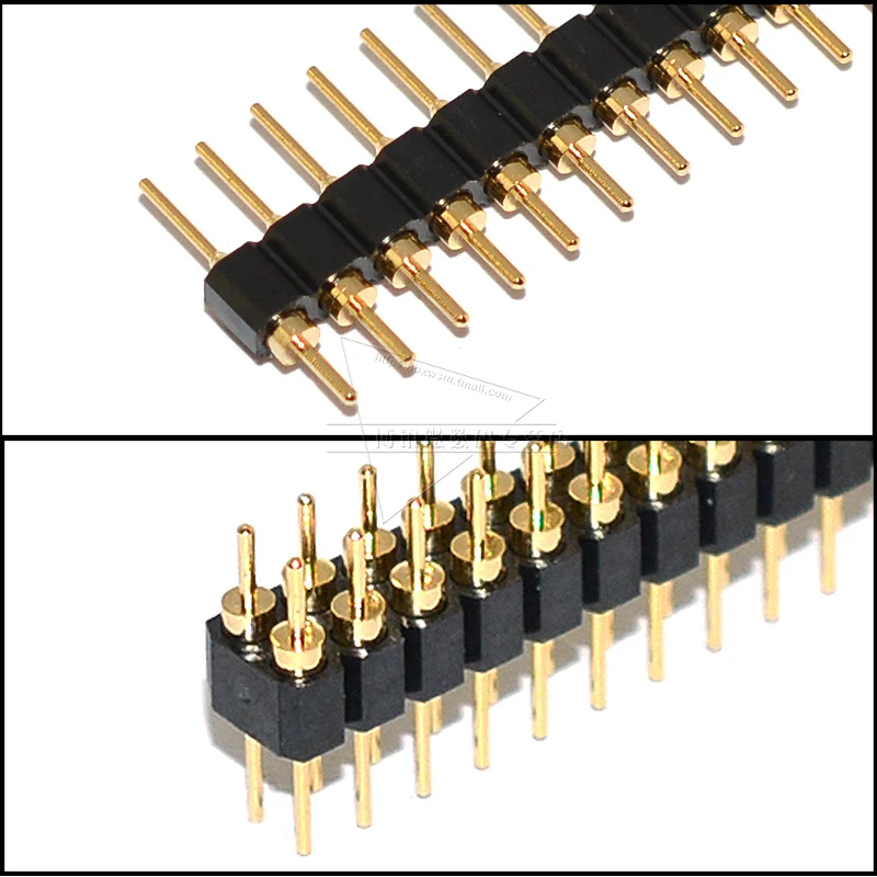 Comprar Cabezal de pasador de agujero redondo de aguja recta/curva SMD, pie de cobre chapado en oro, Individual/doble fila, hembra/macho, 1x40P/2x40P, 2,54mm