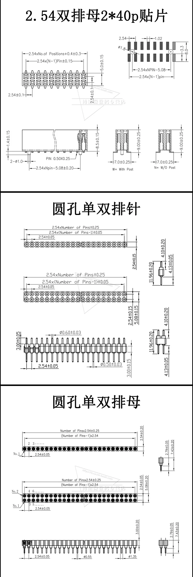 Comprar Cabezal de pasador de agujero redondo de aguja recta/curva SMD, pie de cobre chapado en oro, Individual/doble fila, hembra/macho, 1x40P/2x40P, 2,54mm