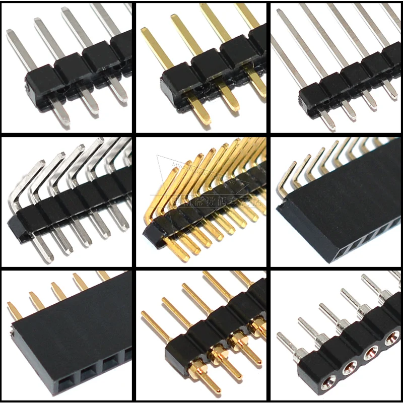 Comprar Cabezal de pasador de agujero redondo de aguja recta/curva SMD, pie de cobre chapado en oro, Individual/doble fila, hembra/macho, 1x40P/2x40P, 2,54mm