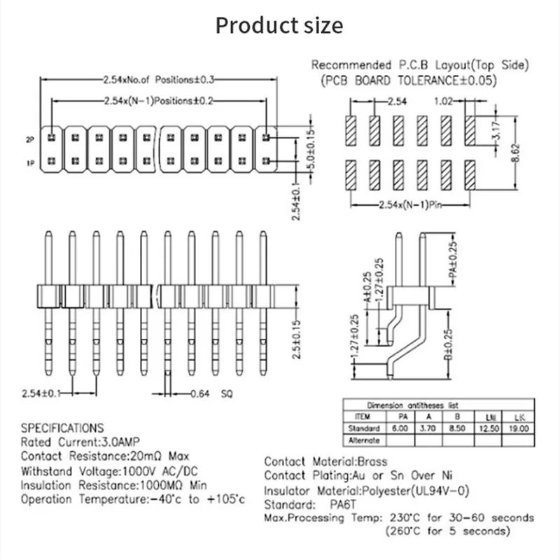 5 uds 2,54 MM Pin Header macho doble fila ángulo recto Horizontal SMT 2x2 4 6 8 10 12 14 16 20 24 26 28 30 34 40 60 80 posición