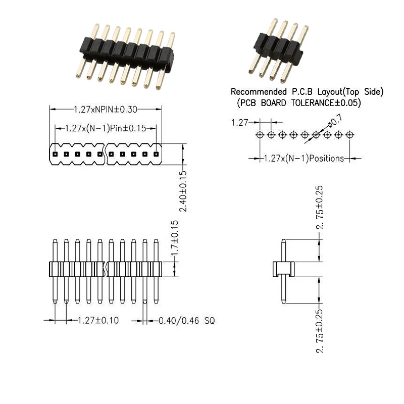 Nombre: Conector de placa PCB macho de 1,27mm de una sola fila/doble fila