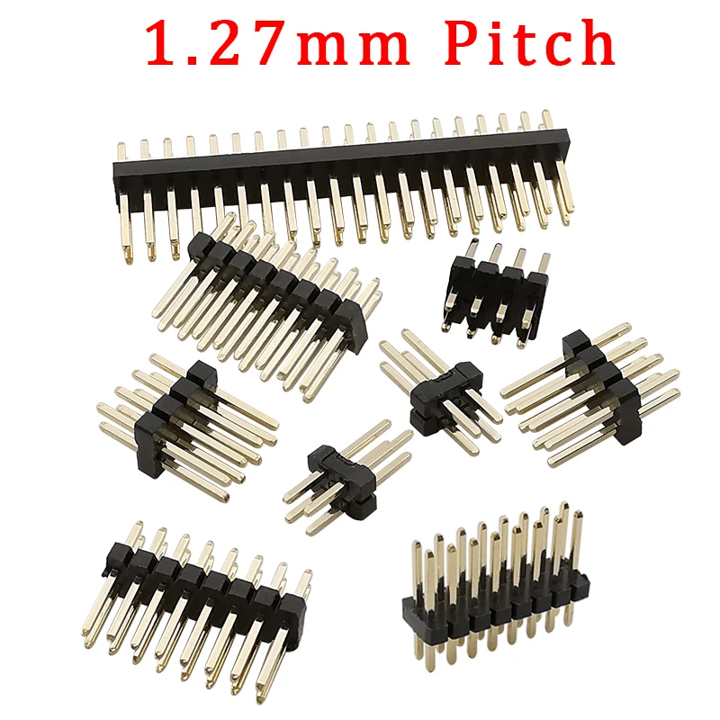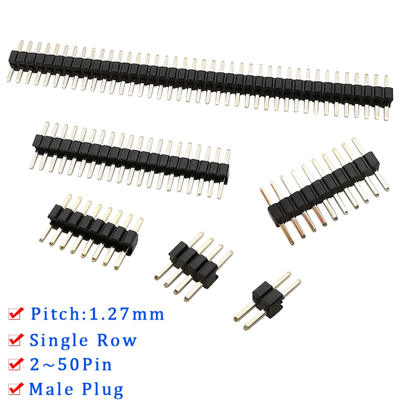 Conector de Pin de paso de 1,27mm chapado en oro de 10 piezas, conector macho de una/doble fila, tira de conector de placa PCB, Pinheader de 2P ~ 50 pines para Arduino