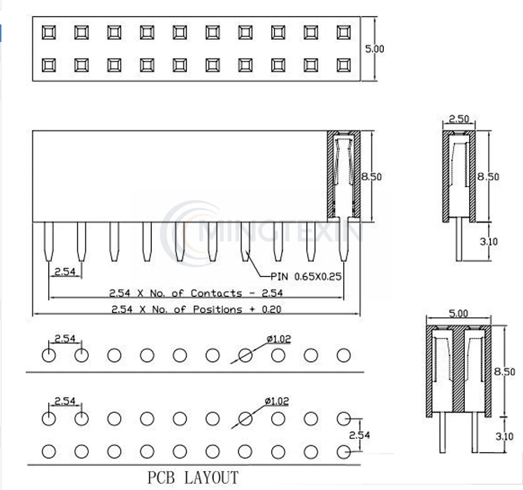 Comprar Cabezal de Pin recto hembra de doble fila, Conector de tira PCB de ángulo recto de 2,54mm, 2x2/3/4/5/6/7/8/9/10/12/14/20, 5 unidades/30/40 pines