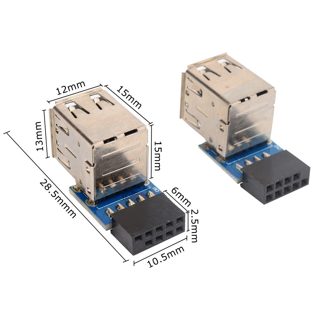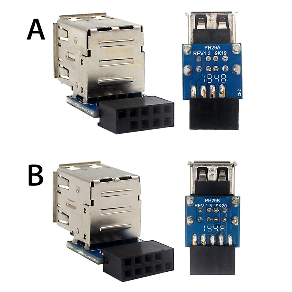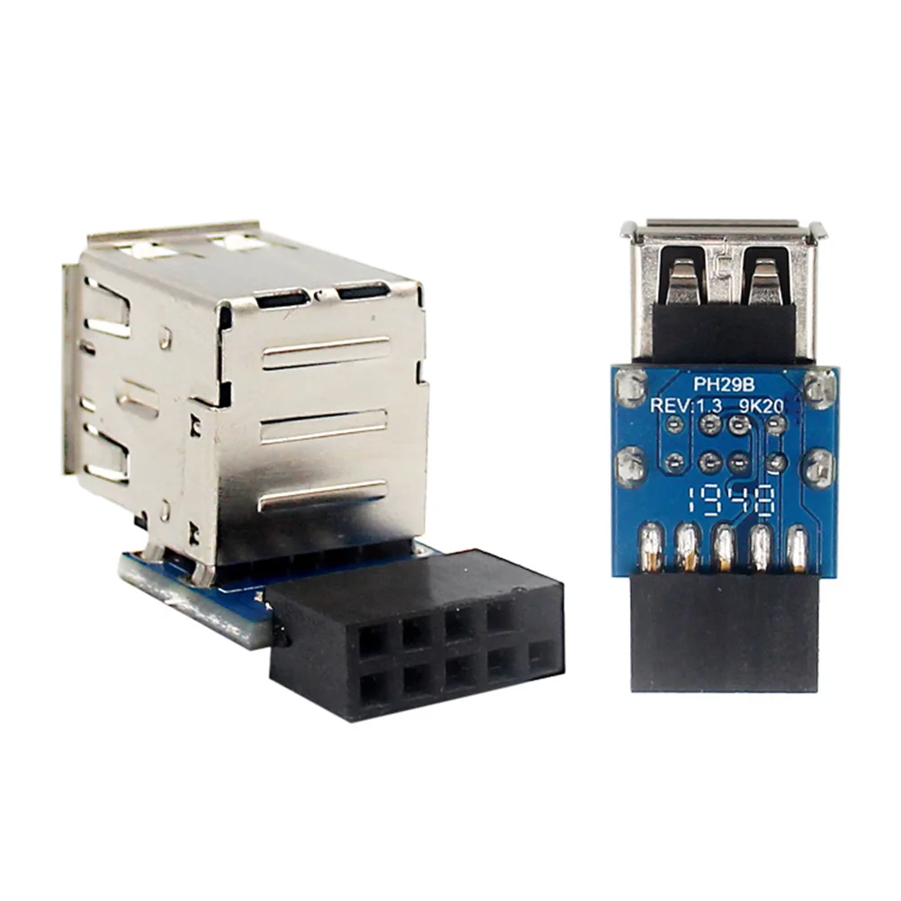 Comprar Cabezal de placa base USB 2,0, convertidor de adaptador hembra de 9 pines, 10 pines A 2 puertos, USB 2,0 Dual, para PC de escritorio