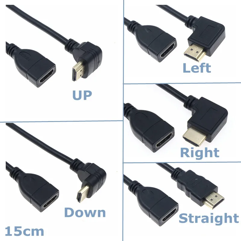 Nuevo de alta calidad. Conectores: 1) Micro HDTV macho en ángulo recto de 90 grados (tipo D) a HDTV hembra (tipo A). 2) Mini HDTV macho en ángulo recto de 90 grados (Tipo C) a HDTV hembra (Tipo A). 3) HDTV macho en ángulo recto de 90 grados (tipo A) a HDTV hembra (tipo A). Proporciona ancho de banda máximo para resoluciones de hasta 1080p y más. Velocidad de transferencia de hasta 340 MHz (10,2 Gbps). Conectores chapados en oro, alivio de tensión moldeado y blindaje de lámina de Mylar. Cable construido con material de alta calidad para una mejor conexión de contacto entre equipos HDTV. Longitud: unos 15 cm.